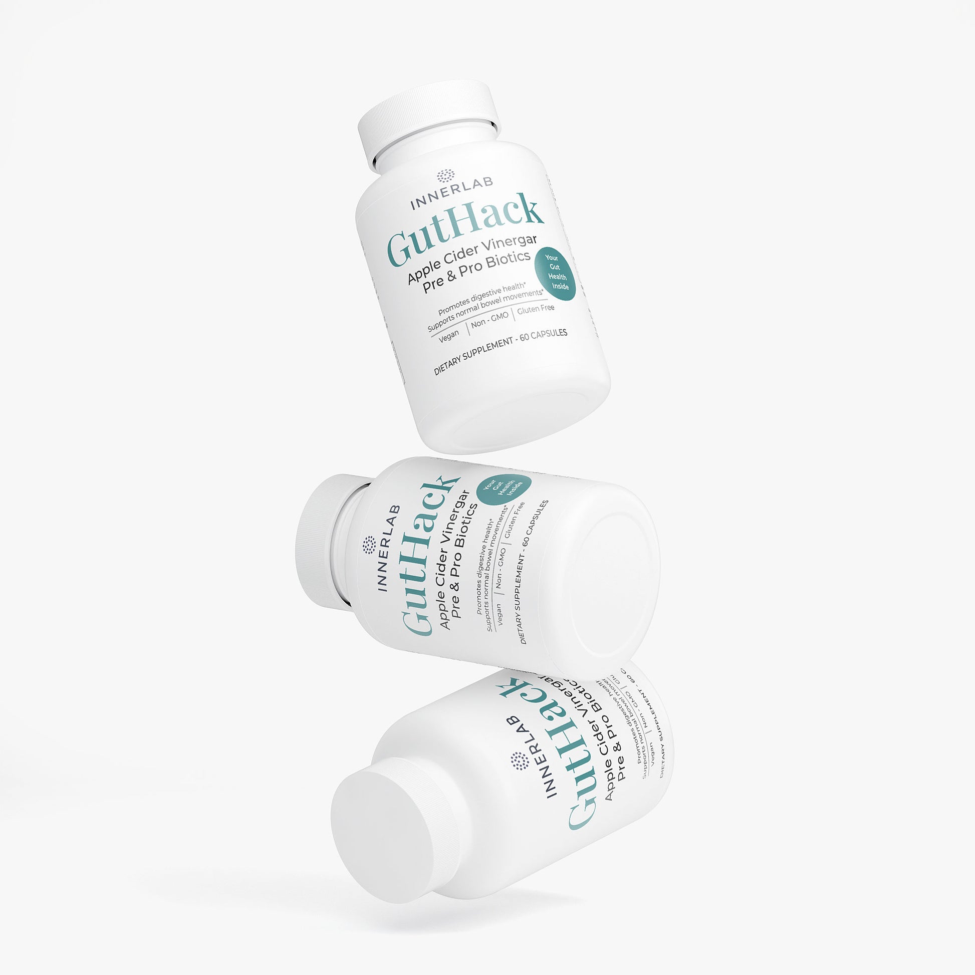 GutHack is a complete digestive support formula made for real life. Whether you struggle with bloating, irregularity, or the post-meal heaviness that slows you down, GutHack helps restore balance with a blend of enzymes, probiotics, and prebiotics. It’s gentle, effective, and clean — designed to help you feel lighter, more regular, and more connected to your core, every single day.