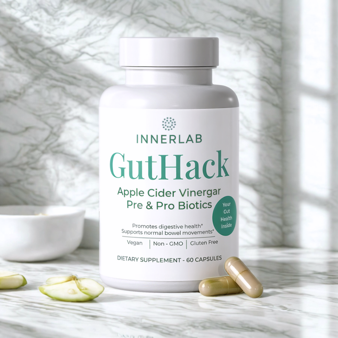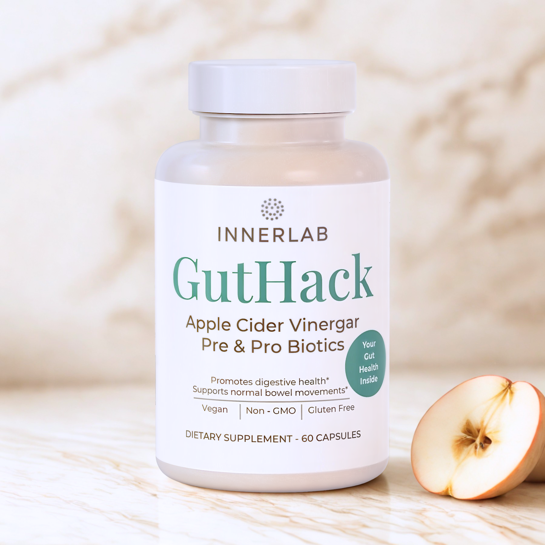 GutHack is formulated to provide comprehensive support for your digestive system, promoting a balanced gut environment and overall wellness. This dietary supplement combines Apple Cider Vinegar Powder, known for its natural digestive properties, and Inulin, a prebiotic fiber from Jerusalem artichoke root, to nourish beneficial gut bacteria.*
